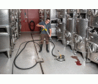 La limpiadora de superficies FRV 30 Me de acero inoxidable permite una limpieza con agua caliente a hasta 85°C. Gracias a la aspiración automática del agua sucia integrada, la FRV 30 Me permite una limpieza de superficies aún más eficaz tanto en interiores como en exteriores. La FRV 30 Me está equipada con una manguera de aspiración de 7,5 m resistente a temperaturas elevadas realizada en poliuretano. Los rodillos de dirección que no dejan marcas en el suelo y el doble alojamiento cerámico son otras características de calidad de la potente limpiadora de superficies. Características técnicas: Máx. 250 bares, 1300 l/h. (Solicitar por separado el kit de boquillas específico.)