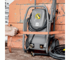 Limpiadora de alta presión portátil HD 8/18-4 M Cage, de diseño Cage especialmente robusto, con un bastidor tubular con recubrimiento de polvo que ofrece una buena protección para usos móviles en condiciones duras y para transporte frecuente. El equipo está diseñado para el servicio en posición vertical u horizontal y de forma que facilita el mantenimiento, ofreciendo, pues, al usuario una flexibilidad y estabilidad máximas. El trabajo sin fatiga y el montaje/desmontaje rápido están garantizados con la pistola de alta presión EASY!Force, que aprovecha la fuerza de retroceso del chorro a alta presión para reducir a cero la fuerza de sujeción, y los cierres rápidos EASY!Lock, para un manejo 5 veces más rápido que las conexiones convencionales sin que ello reduzca su robustez y durabilidad. De manera adicional, el caudal de agua y la presión de trabajo pueden regularse mediante Servo Control directamente en la pistola. Accionada mediante un motor trifásico de 4 polos y marcha lenta con un control de interruptor de presión, la bomba axial de 3 pistones con culata de latón reduce el consumo energético en alrededor del 20 por ciento. Como protección de los componentes de alta presión están integrados de serie una descarga automática de presión y un filtro fino grande para agua.